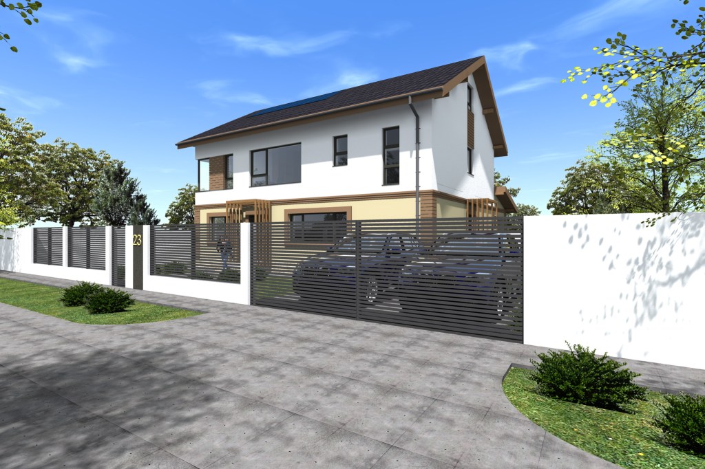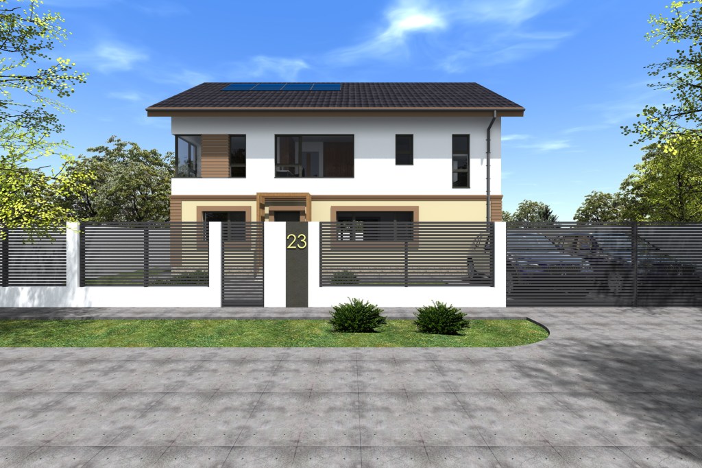 Casa moderna P+1E si imprejmuire (Feng Shui)